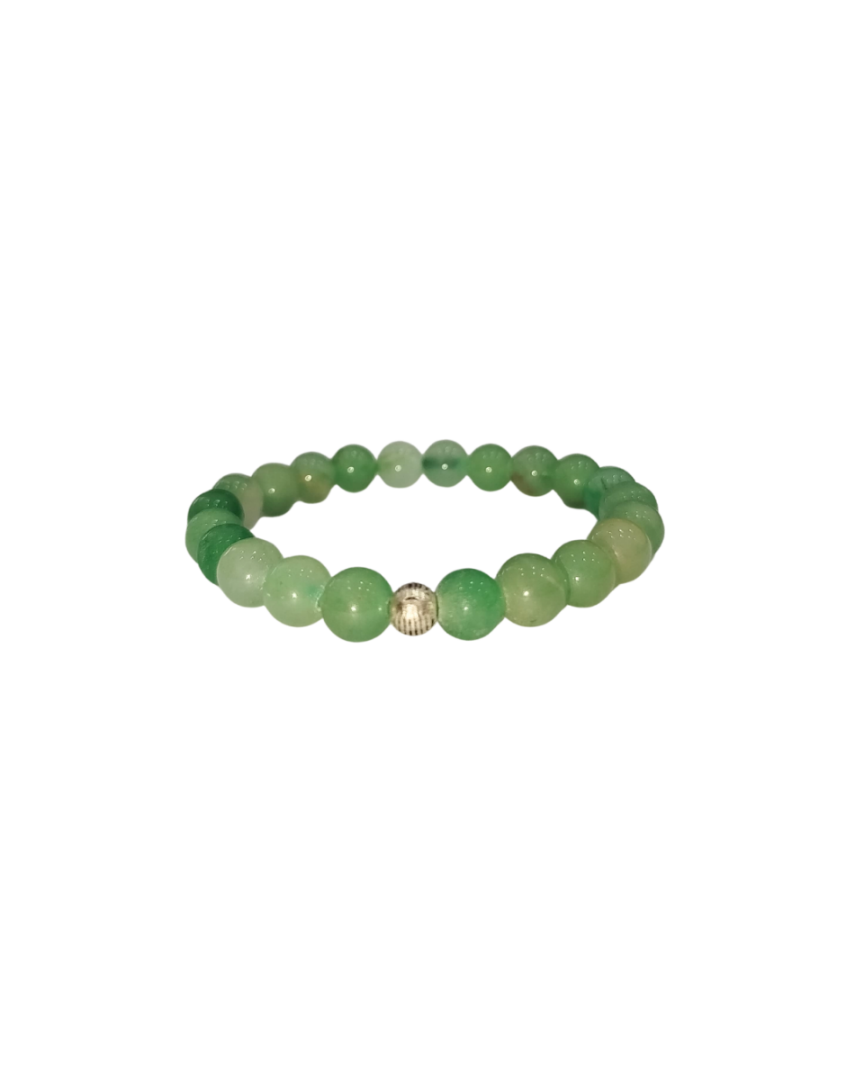 Браслет из натурального авантюрина наполняет энергией и стилем благодаря своим зелёным оттенкам, которые считаются символом положительной энергии и удачи. Авантюрин известен своим успокаивающим действием, помогает снизить стресс и балансирует сердечную чакру. Подходит для ежедневного ношения, этот браслет сочетает природную красоту с ручной работой.