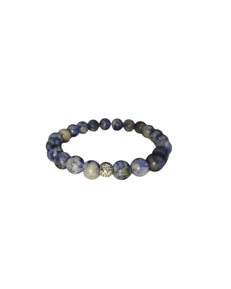 Браслет из натурального содалита Браслет из натурального содалита выделяется своими глубокими синими оттенками и энергией, способствующей умственному равновесию. Содалит помогает улучшить коммуникацию, снизить стресс и повысить творческие способности. Этот браслет ручной работы идеально подходит для ежедневного ношения, сочетая элегантность с природной красотой.