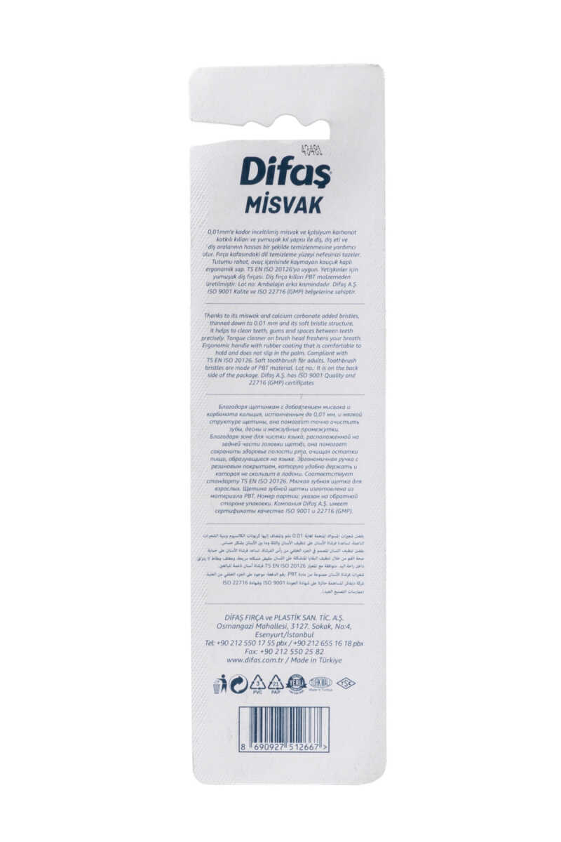 Зубная щётка с ультратонкими щетинками до 0,01 мм, обогащёнными мисваком и карбонатом кальция, обеспечивает деликатную и эффективную очистку зубов, дёсен и межзубных пространств. Язычок-скребок на обратной стороне головки щётки удаляет налёт, способствуя свежему дыханию и улучшенной гигиене полости рта. Отличный выбор для тех, кто предпочитает мягкую, но тщательную чистку.