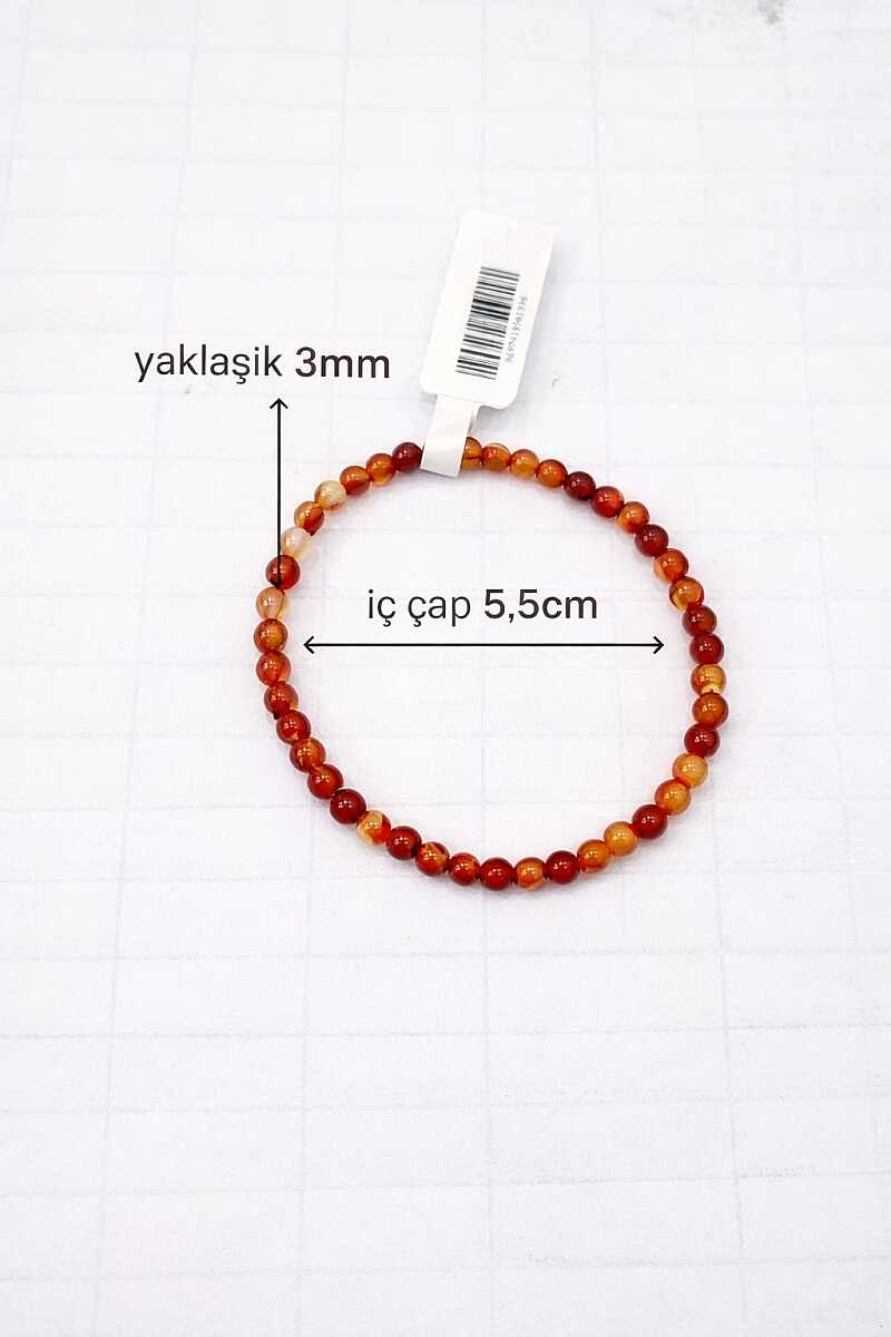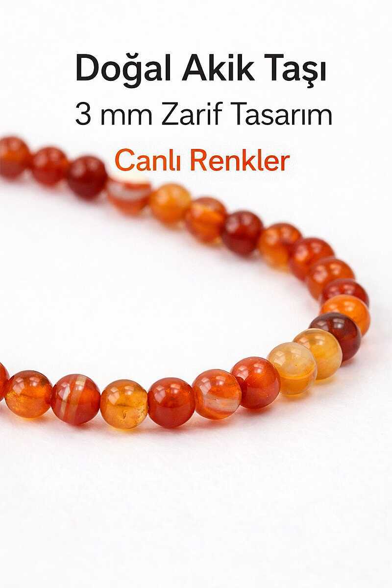 3mm kırmızı akik taşlardan oluşan bu zarif bileklik, minimal ve şık tasarımıyla günlük kullanıma uygundur. Doğal taşın kendine özgü dokusu ve rengi sayesinde her bileklikte hafif ton farklılıkları görülebilir, bu da ürünü benzersiz kılar. Hem tek başına hem de diğer bilekliklerle kombin yaparak rahatlıkla kullanılabilir.