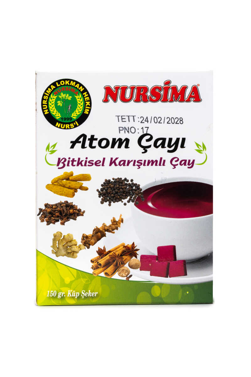 Atom Çayı (150 gr. Küp Şeker) Doğal bitki özleriyle zenginleştirilmiş Atom Çayı (150 gr. Küp Şeker), vücuda enerji kazandırmaya yardımcı olurken bağışıklık sistemini desteklemeye yönelik özel formülüyle öne çıkar. İçeriğinde zencefil, tarçın, karanfil, havlıcan, zerdeçal gibi şifalı bitkiler bulunan bu karışım, soğuk kış günlerinde hem lezzetli hem de sağlıklı bir destek sunar. Pratik küp şeker formu sayesinde kolayca tüketilebilir. Günde 1-2 adet sıcak suyla eritilerek tüketilmesi tavsiye edilir. Geleneksel bitki çayı alışkanlıklarına modern bir dokunuşla katkı sağlayan bu ürün, katkı maddesi içermez ve tamamen doğaldır.