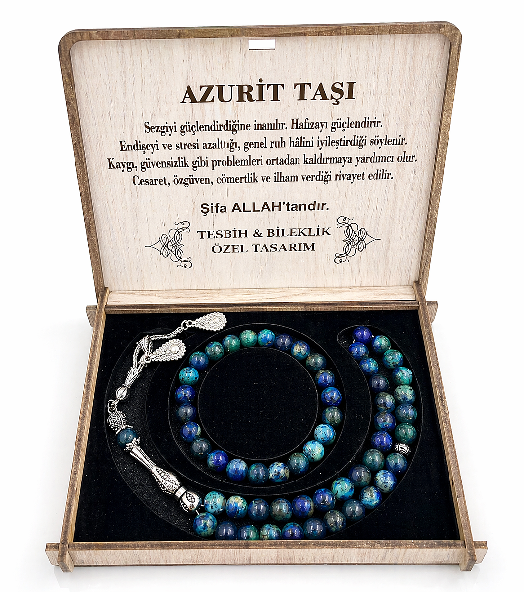 Azurite Natural Stone Tasbih and Bracelet Set with Box