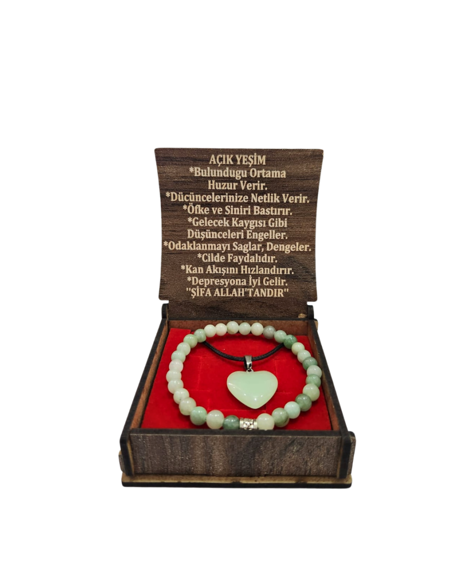 Notify me when its in stockThe Boxed Light Jade Stone Necklace and Bracelet Set stands out with its elegant design and the calming energy of jade. Light-toned jade supports tranquility and inner balance, while the stylish necklace and bracelet add a natural glow to your style for both daily wear and special occasions. With its special box, it is a meaningful and valuable gift choice for your loved ones.