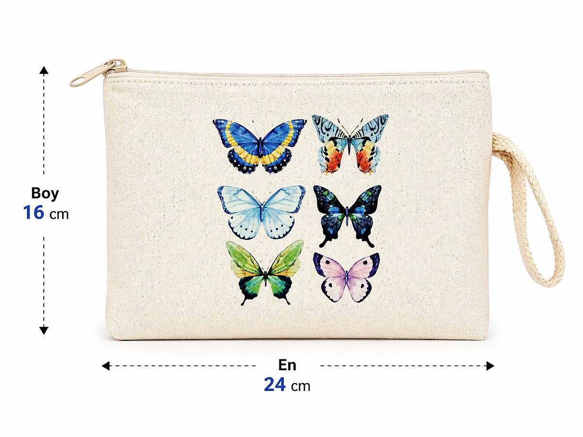 Çok Amaçlı Bez Cüzdan Kelebek Baskılı