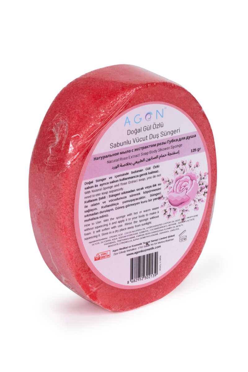 Gül Sabunlu Vücut Duş Süngeri ile cildinizi besleyin ve tazeleyin! Şimdi sipariş verin, sağlıklı, yumuşak ve canlı bir cilt için!