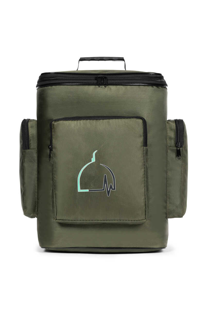 Hacamat Sırt Çantası - HAKİ, hacamat uygulayıcılarının ekipmanlarını düzenli, güvenli ve pratik şekilde taşıyabilmeleri için özel olarak tasarlanmıştır. 42 cm boy, 25 cm en, 42 cm derinlik ve 35 cm genişlik ölçüleriyle geniş iç hacim sunan bu ergonomik çanta; yalnızca 955 gram ağırlığıyla hafifliği ve taşınabilirliği bir arada sunar.