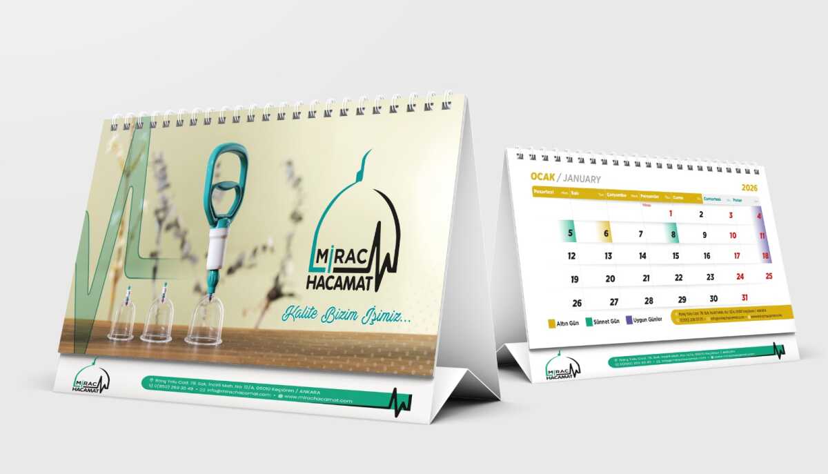“Mirac Hacamat Masa Takvimi”, hacamat uygulamalarını doğru zamanlarda ve bilinçli şekilde yapmak isteyenler için özel olarak hazırlanmış pratik ve rehber niteliğinde bir masa takvimidir. Hicri ve miladi takvim bilgilerini bir arada sunan bu ürün, hacamat için tavsiye edilen günleri kolayca takip etmeyi sağlar.