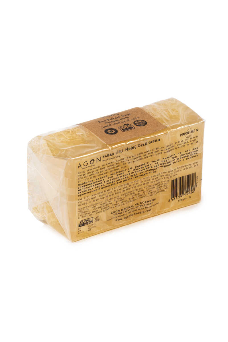 Notify me when its in stockOur natural loofah rice essence soap deeply cleanses the skin while providing a gentle exfoliation effect, removing dead skin cells for a refreshed look. Enriched with rice extract, it helps brighten and even out skin tone. Vitamin E and B3 nourish the skin and maintain its natural moisture balance. With regular use, your skin becomes smoother, healthier, and more radiant.
