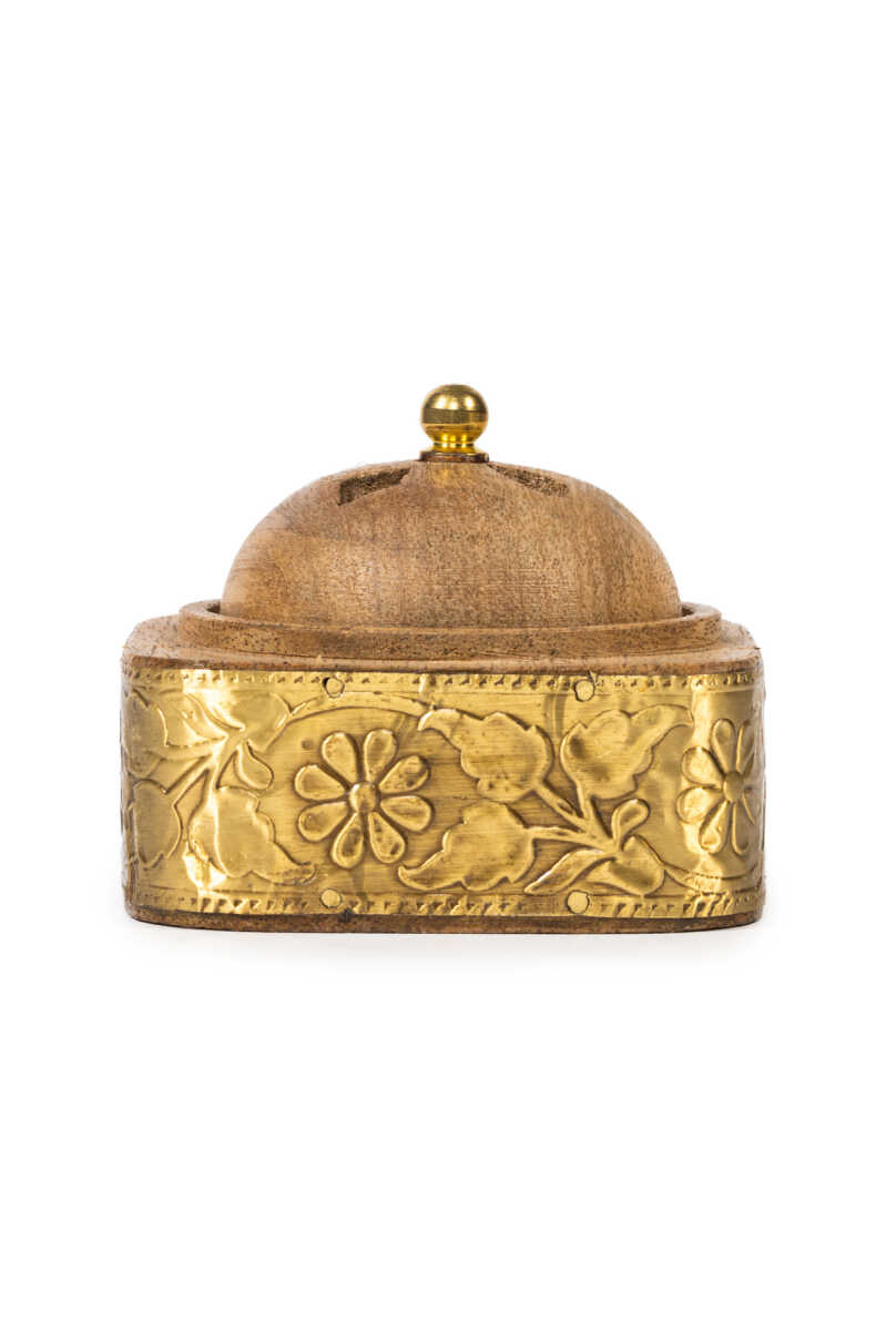 The Small Covered Metal Incense Burner combines elegant and authentic design, enhancing your incense rituals. Its metal body and patterned lid provide safe use and help distribute the incense smoke evenly. Compatible with cone, stick, or resin incense. Dimensions: Diameter 7 cm x Height 6 cm (including lid) Perfect for home, office, meditation, or yoga spaces as a decorative and aromatherapy accessory.